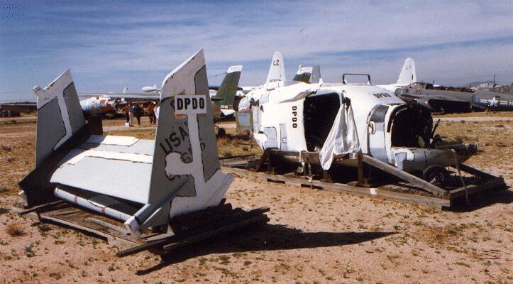 - 69-7656 (O-2 M0454) Cutting up of this one is well on the way when Bill Word took this photo at AMARC Tucson, AZ on 11 March 1989. (60k)