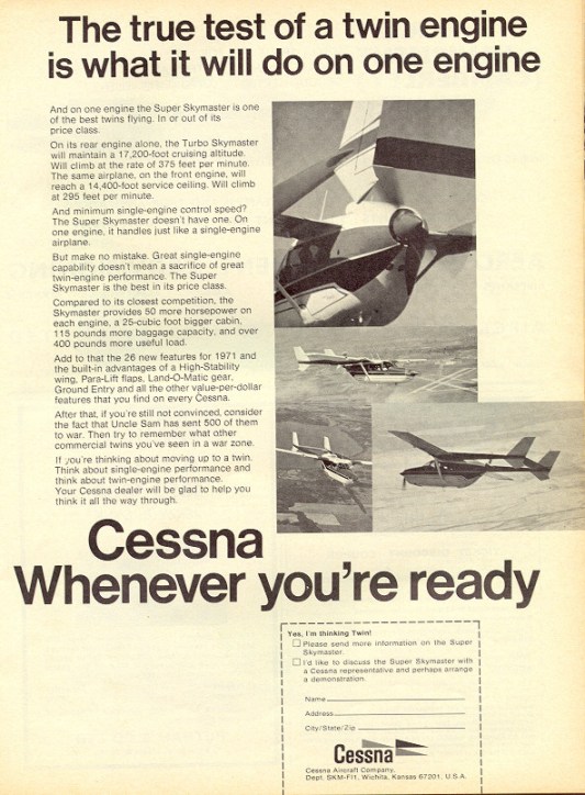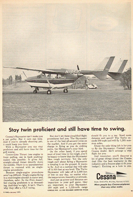 - Half page advert on '78 Cessna Skymaster and Turbo Skymaster featuring N1311L