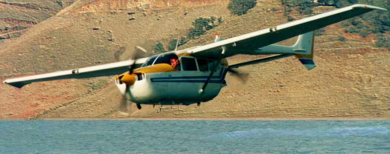 - N1CD (337D-1124) a super flying shot of this aircraft taken at Pine Flat Lake, California by Bob Murray (31k)