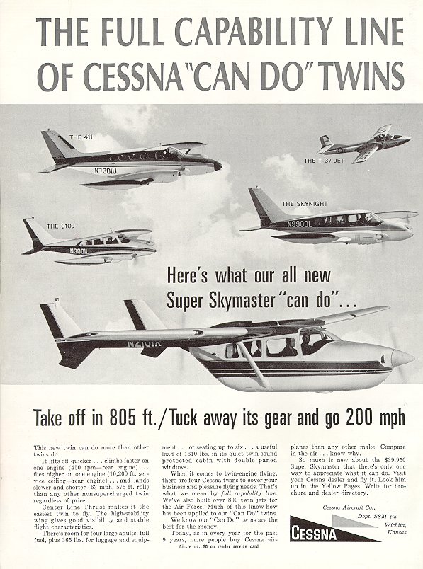 - Full page advert about Cessna's 'can do' twin with N2101X in it. (97k)