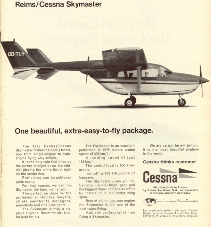 - Full page advert from Reims taken from Flight International 15 June 1972. Has a picture of OO-TLH in it. Sorry I know nothing about OO-TLH. (105k)